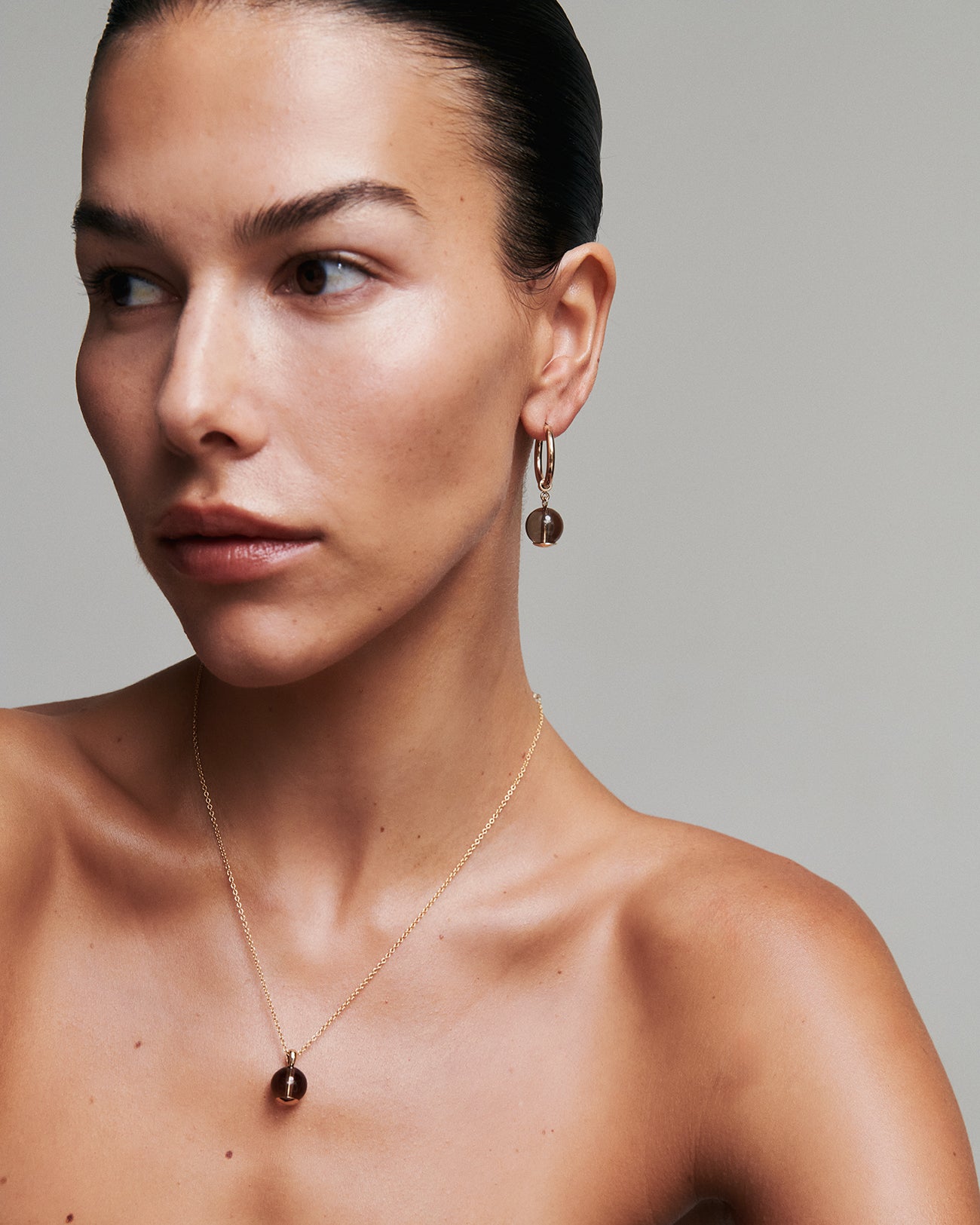 When we first started to explore smoky quartz, we were immediately captivated by its character; clear yet rich in tone—ranging from deep brown to soft grey, adapting beautifully to different metals. Staying true to our refined way of design, this collection offers a playful way to introduce a little bit of colour into your capsule jewellery collection.
