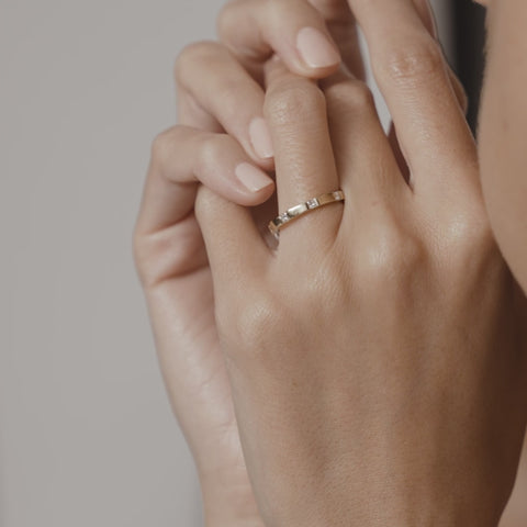 A: The carat refers to the percentage of pure gold that is present in the alloy — 9ct is 37.5% and 18ct is 75% pure gold. The different alloy mixes will affect the colour & durability of the piece. We recommend choosing the same metal composition as your engagement ring for a seamless pairing.