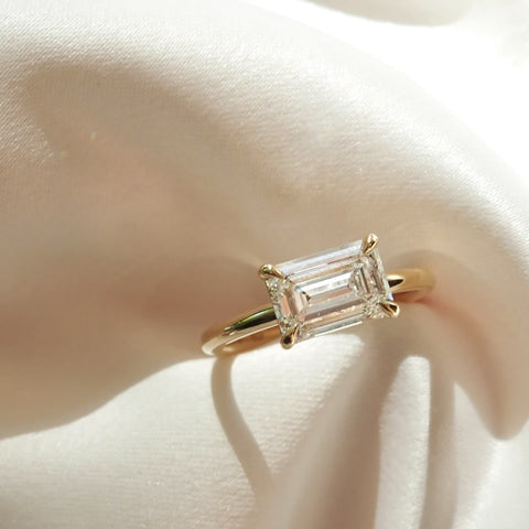 Fae | East West Emerald Diamond Engagement Ring Ready Made