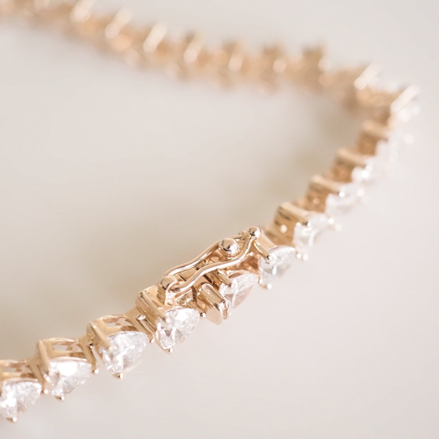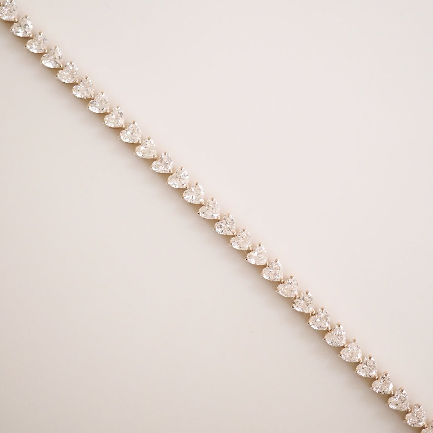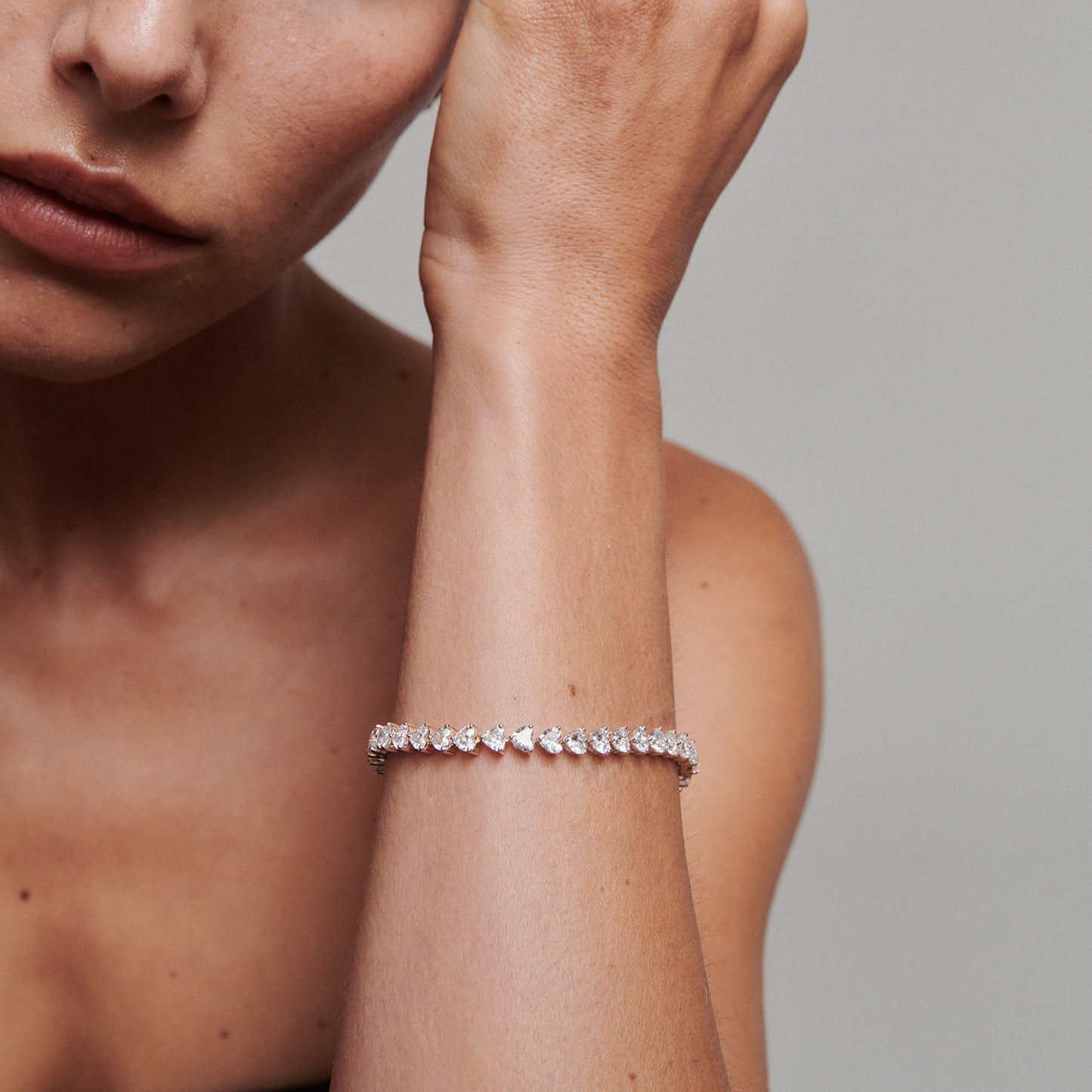 A delicate line of heart-cut lab-grown diamonds set in gold—a modern, romantic take on the classic tennis bracelet