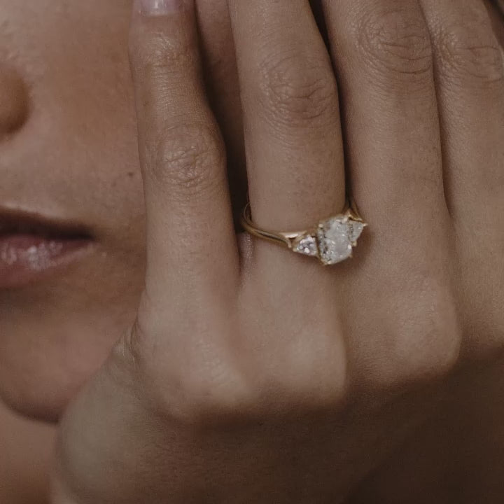 A captivating elongated cushion lab-grown diamond trilogy — thought to embody a couple's past, present and future together.