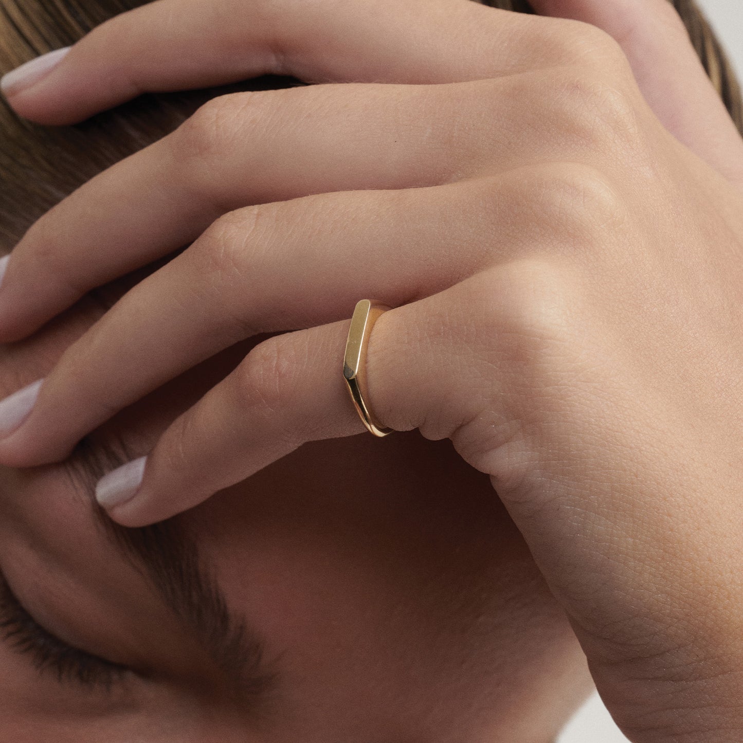 This piece reimagines the classic silhouette of our Narrow Signet with contemporary restraint. Its sleek profile, contrasted with soft curves, embodies a considered minimalism that transcends trends.